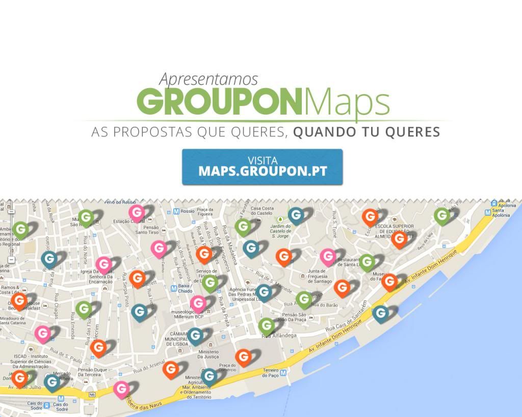 A Groupon Portugal lançou esta semana uma nova aplicação: Groupon Maps, um motor de busca de ofertas para Portugal. Trata-se de uma nova ferramenta de procura que permite aos utilizadores localizar as ofertas da sua cidade, quer seja por zona, através de um mapa virtual da sua localidade, ou pelo tipo de oferta que está à procura.