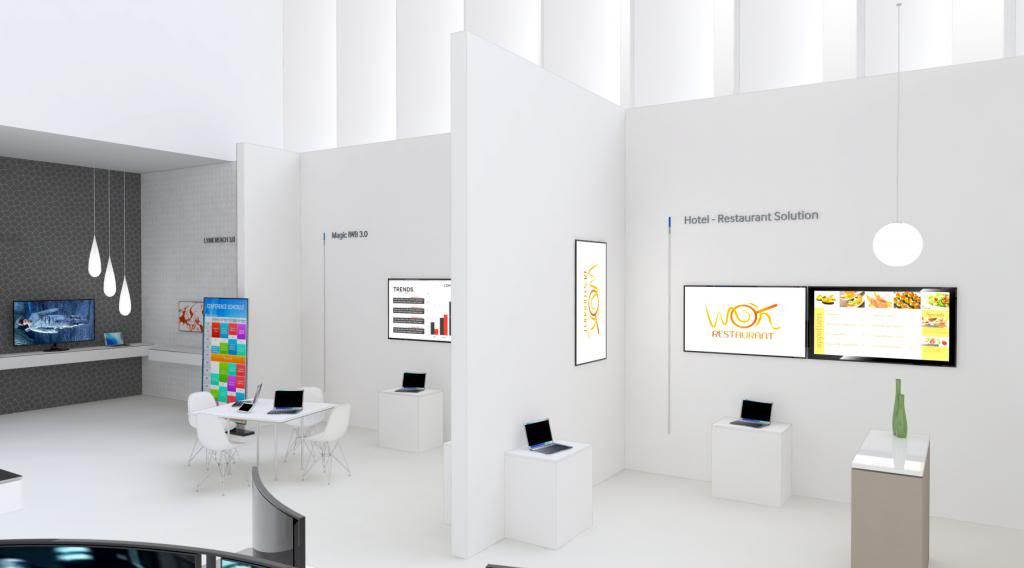 Para responder à crescente procura de soluções avançadas de visualização e reprodução de conteúdos, por parte da indústria hoteleira, a Samsung anunciou uma oferta composta por monitores inovadores, especialmente criada para endereçar as necessidades que existem quer ao nível do lobby, como também dos próprios quartos. O espaço de demonstração criado pela Samsung sob o mote “Rediscovery of the Hotel Lobby” (A redescoberta do lobby de hotel) mostra um video wall que reproduz um conjunto de informações que podem ser visualizadas numa imagem nítida e de alta qualidade. O equipamento foi criado a pensar no lobby dos hotéis, e exibe informações como o estado do tempo, as taxas de câmbio, e outros dados relevantes que exigem uma atualização em tempo real.