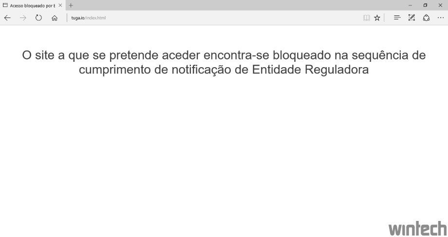 Acesso aos sites está interdito, sendo apresentada a mensagem “O site a que se pretende aceder encontra-se bloqueado na sequência de cumprimento de notificação de Entidade Reguladora”.