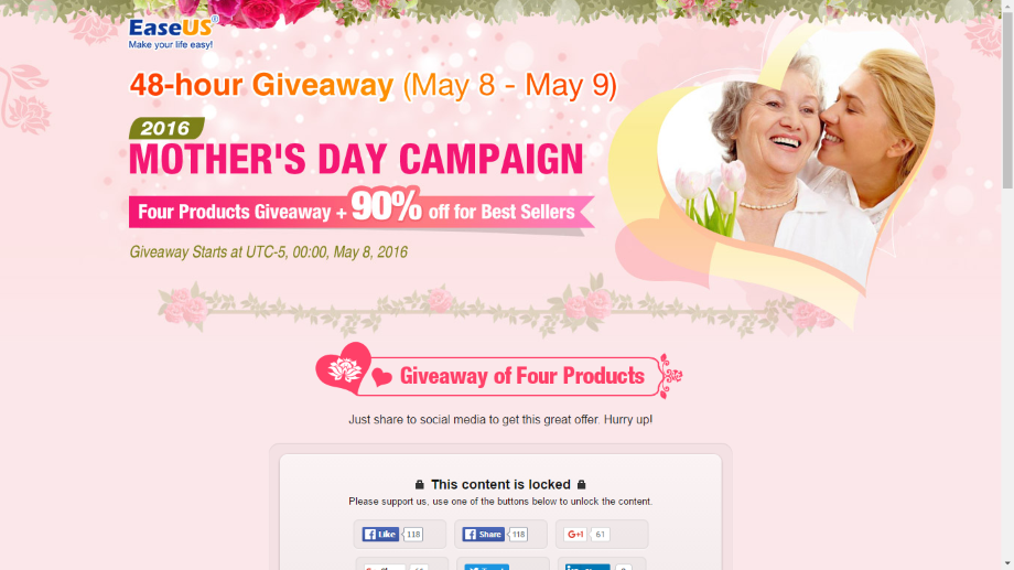 O site de participação está disponível em http://www.partition-tool.com/giveaways/mothers-day.htm e pode ser usado até dia 9 de maio.