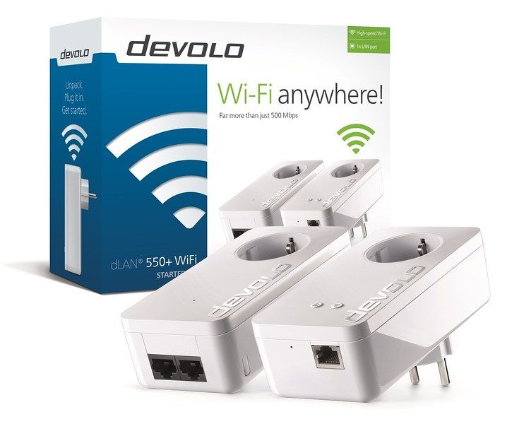 A ligação integrada de rede é perfeita para computadores, Smart TVs e consolas de jogos. O novo devolo dLAN 550+ WiFi utiliza o powerline para conseguir uma transmissão de dados até 500 Mbps. A tomada integrada com filtro de corrente evita a inutilização de uma tomada de parede.