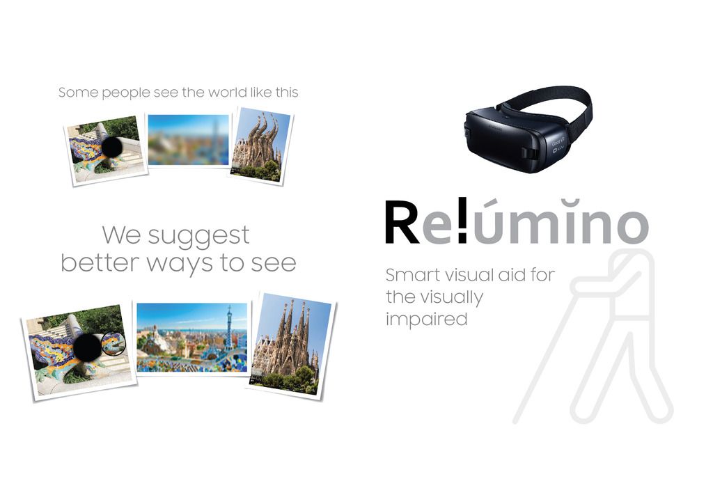 Relúmĭno é uma aplicação de auxílio a invisuais ou pessoas com algum tipo de deficiência visual que trabalha em conjunto com o Gear VR, permitindo-lhes ler livros ou ver programas de televisão com diferentes níveis de nitidez. Funciona como uma aplicação móvel, ou seja, quando é inserida no Samsung Gear VR consegue melhorar os elementos gráficos e de texto para que estes possam ser visualizados comqualidade superior. A tecnologia tem ainda a capacidade de remapear pontos com a deslocação das imagens, e usa um gráfico de grelha Amlser (Testes visuais) para corrigir as imagens com distorção provocada pela metamorfopsia (distúrbio visual caracterizado pela distorção de parte da visão). A Relúmĭno permite que pessoas com deficiências visuais possam ver TV, sem terem que recorrer às dispendiosas soluções de auxílio visual que estão atualmente disponíveis no mercado.