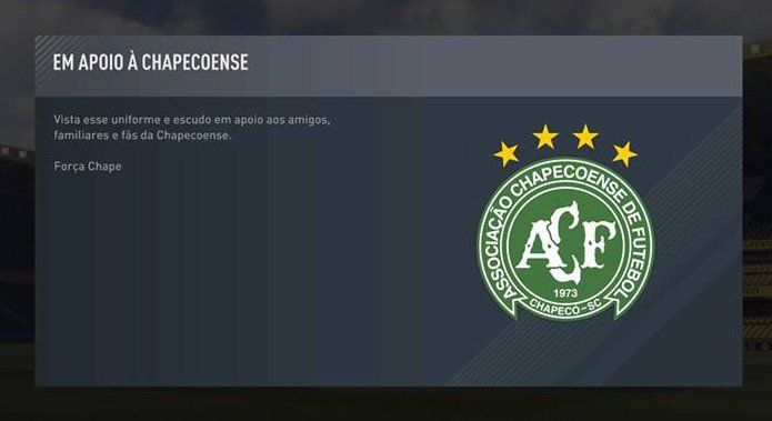A Electronic Arts disponibilizou gratuitamente a todos os jogadores de FIFA Ultimate Team de FIFA 17, os equipamentos e emblema da equipa Chapecoense.