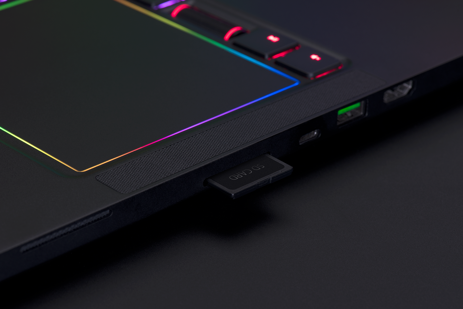 O Razer Blade Pro está exclusivamente equipado com switches Mecânicos de Perfil-Ultra-Baixo com verdadeiros pontos de atuação e reset. Os cliques são registados com 65 gramas de força, imitando a sensação de teclados mecânicos completos. O teclado e o trackpad utilizam a tecnologia Razer Chroma™. Esta tecnologia de LED tricolor atinge praticamente efeitos de iluminação infinitos que podem ser personalizados e sincronizados com acontecimentos no jogo.