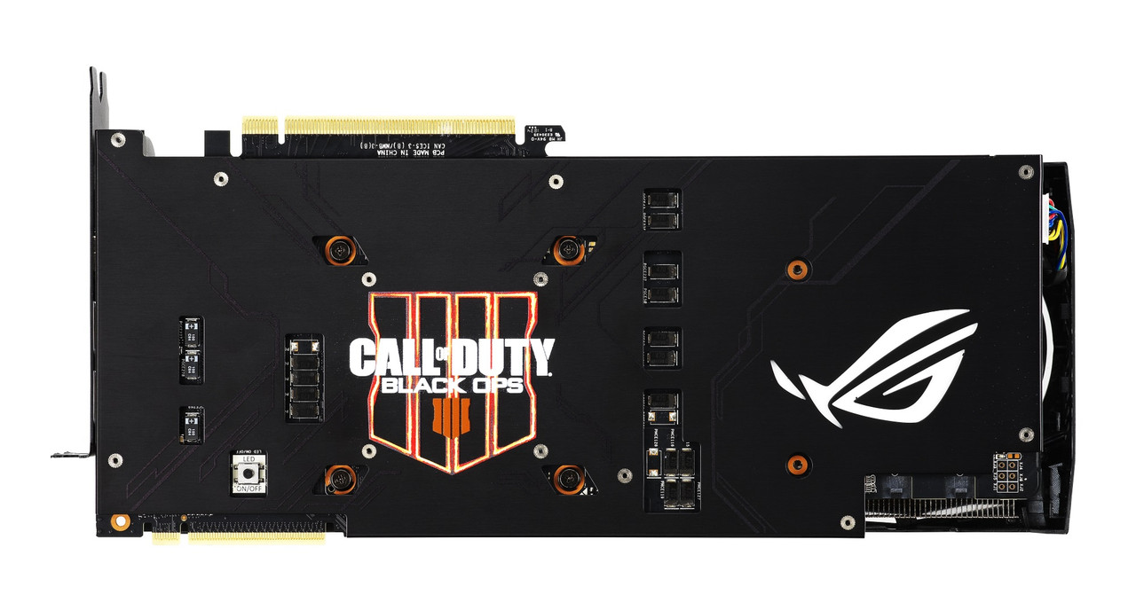 A ROG trabalhou em parceria com a Activision para permitir que os efeitos do jogo Call of Duty: Black Ops 4 fossem expressos através da iluminação Aura. O logotipo na parte de trás da placa gráfica pisca em sincronia com as contagens regressivas redondas e muda de cor quando o jogador está debaixo de água ou quando a área de reprodução entra em colapso durante o modo Blackout do jogo. O software Aura Sync também permite que a iluminação seja coordenada com outro hardware ROG Call of Duty: Black Ops 4 e compatível com Aura, para que os efeitos de melhoria de imersão possam ser lançados do sistema até à área de trabalho.