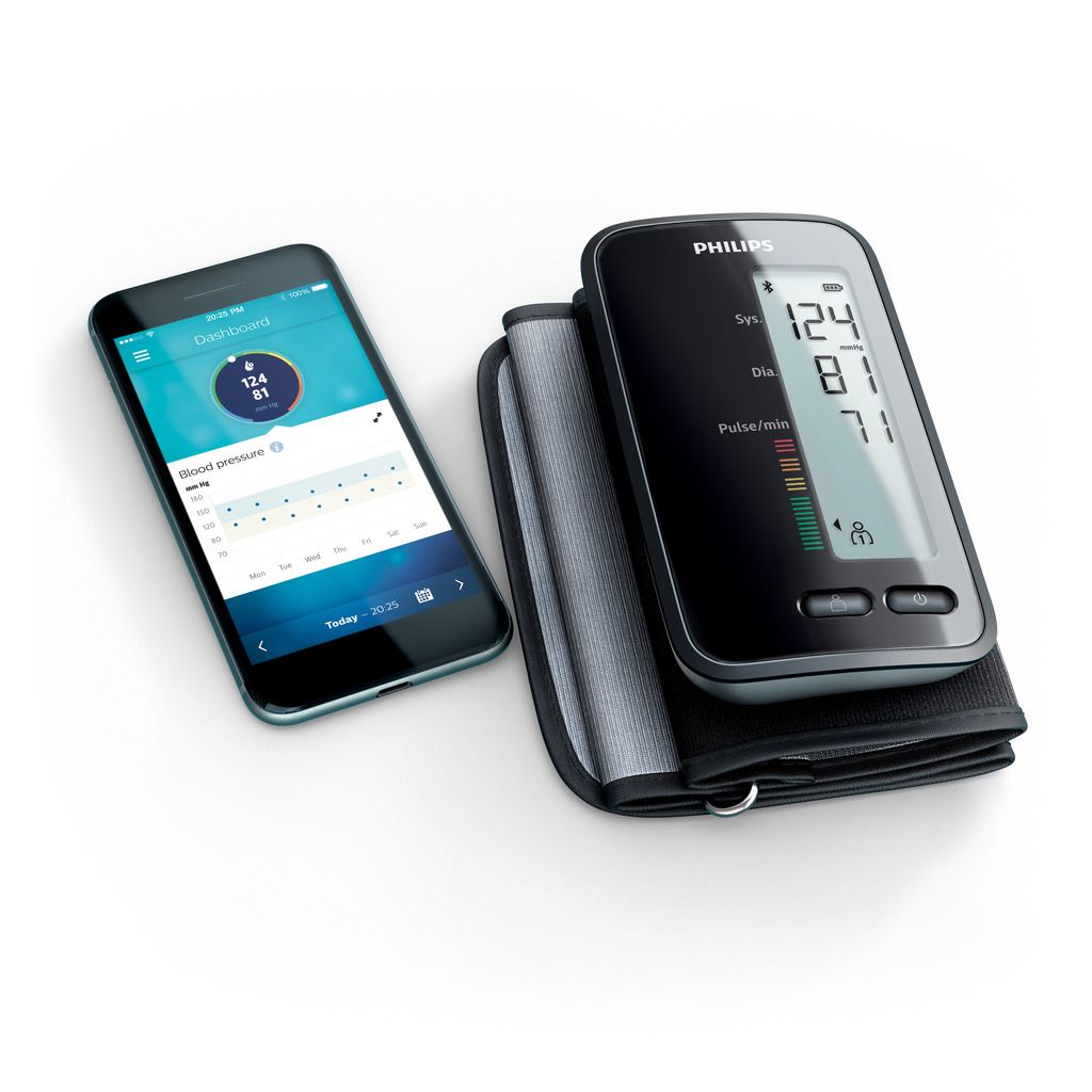 - The Philips Upper arm blood pressure monitor (Monitor de presão arterial de antebraço Philips) – Um dispositivo recarregável, sem cabos, que permite medir a pressão arterial sistólica e diastólica, assim como a frequência cardíaca. Possui um ecrã de tamanho superior, retroiluminado e de fácil leitura.