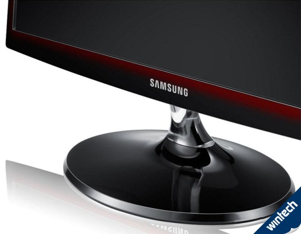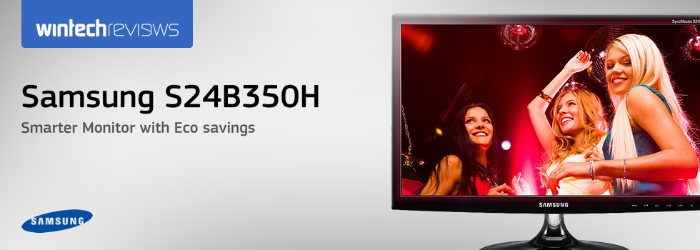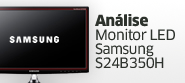 Feitas as comparações entre séries, o S24B350H apresenta a habitual elegância que a Samsung tem vindo a aplicar nos seus monitores e TV's LED. A moldura fina com menos de 2 cm, bem como o pé transparente que imita cristal, oferecem a este monitor um visual bem atrativo. A barra vermelha na moldura preta evita o "ar enfadonho" que carateriza alguns monitores, se bem que a mesma se torna impercetível com o ecrã ligado.