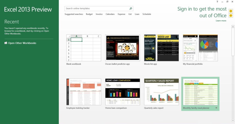 Com variados melhoramentos e aproximando o utilizador das mais difíceis tarefas e equações, também o já bem conhecido editor de folhas de cálculo do Office, o Excel, conta nesta sua edição 2013 com uma maior depuração de elementos, graficamente mais limpo e simples, como de resto se mostram todos os programas do novo Office. E tal como nos demais programas deste pacote, o novo Excel apresenta-se desde logo com as mais variadas funcionalidades focadas no sistema Cloud, mas não só. Logo desde uma primeira utilização, poder-se-á encontrar novos e intuitivos esquemas de página, ou de folhas de cálculo, se preferirem, com a Microsoft a "oferecer" aos seus utilizadores variados esquemas de cálculos e de situações comuns, sem que o utilizador necessite de estar a planear uma folha de cálculo de raiz. Ainda assim, e se tal for desejado, poderá sempre criar uma folha em branco e concebe-la livremente.