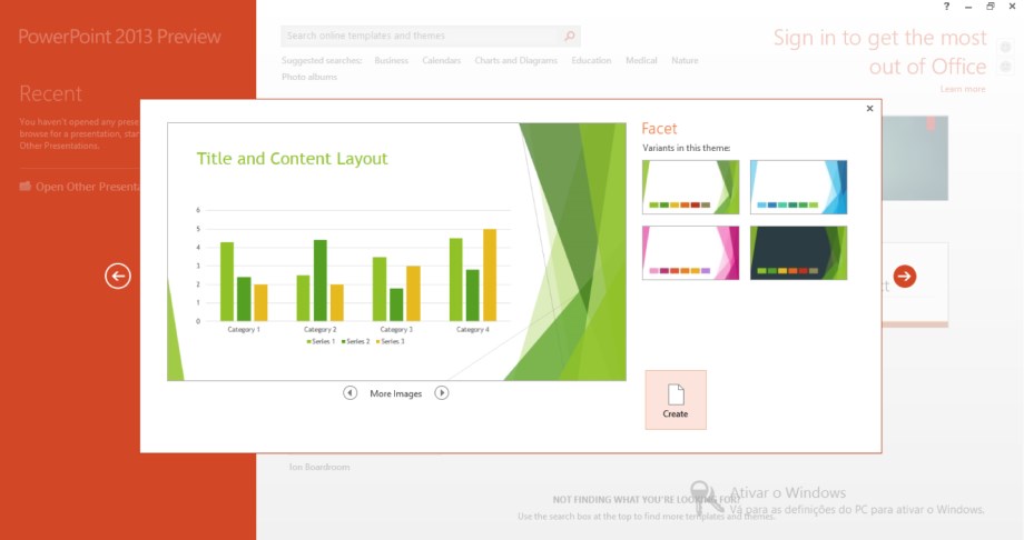 Aquele que é provavelmente o mais conhecido editor de texto do mundo, recebe nesta versão de 2013 uma limpeza formal e gráfica, inerente a todas as aplicações do Office e em total concordância com o grafismo adotado pelo Windows 8. E embora o novo grafismo do Office se revele como uma limpeza de todas as nuances e pormenores das versões anteriores para dar lugar aos ícones e componentes que realmente interessam, a verdade é que uma das mais importantes novidades e alterações deste Word 2013 se mostra ao utilizador assim que o programa é iniciado. Ao invés de um simples documento em branco, predefinido para A4, o utilizador agora poderá contar com um vasto leque de paginações e layouts gráficos, intuitivamente personalizáveis, e que garantem assim desde logo melhoradas opções de paginação dos documentos desejados.