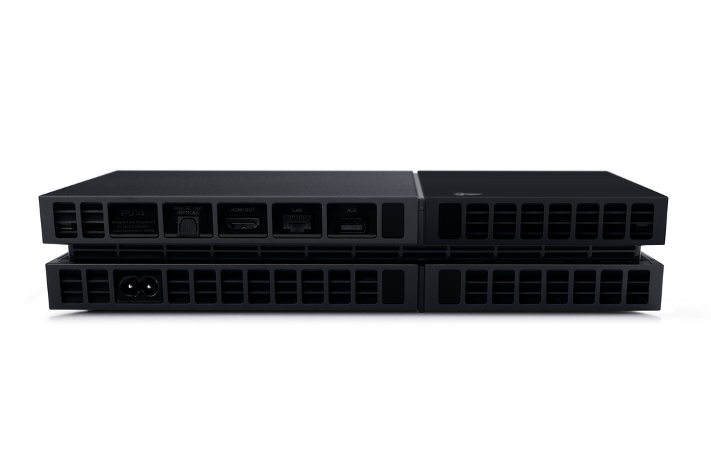 A PS4 neste momento está somente disponível na versão “Jet Black”, a cor que desde início foi definida como a cor padrão da consola. O corpo da consola é dividido em quatro partes e, segundo o fabricante, foi desenhado de forma a ocupar pouco espaço e apresentar um peso reduzido, situação que desde já confirmamos. O dispositivo conta com um botão de “power” que se torna azul quando ele está ligado e com bordas laterais que facilitam o manuseio do aparelho tanto quando este está na posição vertical como quando está na posição horizontal, embora neste caso podemos ter necessidade de adquirir um suporte (criado para o efeito) e que é vendido como acessório opcional. A PlayStation 4 possui 2 Entradas USB frontais, sendo que na parte traseira possui uma ligação HDMI , Auxiliar, Lan e obviamente a entrada DC para sua alimentação.