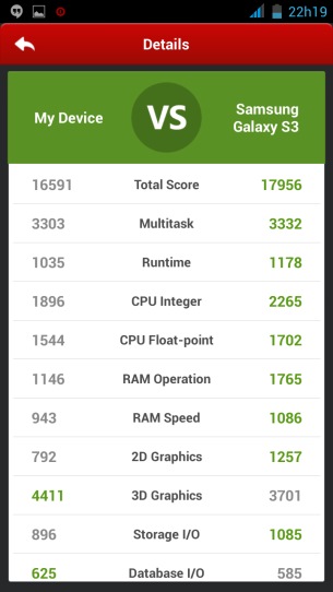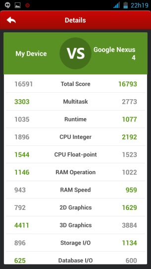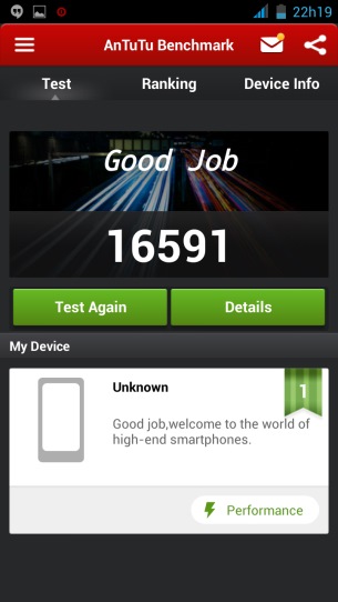 A título de curiosidade e para complementar ainda mais esta análise, resolvemos instalar e executar o software de Benchmark Antutu. Os resultados obtidos classificaram o Wiko Darkmoon com 16591 pontos, colocando-o quase ao mesmo nível de desempenho do Google Nexus 4 (16793) e do Samsung Galaxy S3 (17956 pontos).