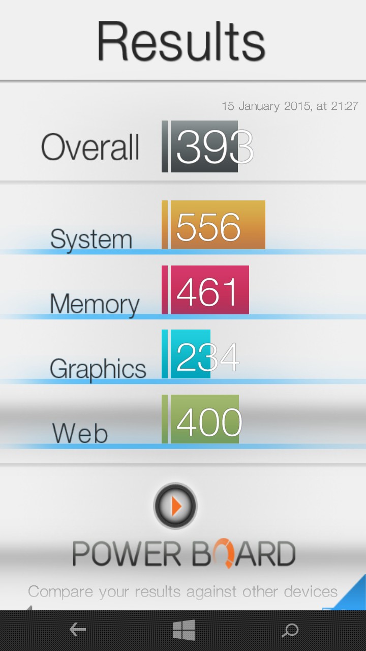 Qualquer análise que se preze deverá possuir alguns resultados de Benchmark. Para isso, decidimos recorrer ao BaseMark OS II Free. Ao longo de alguns minutos, o Lumia 735 esteve a ser testado em vários campos tendo apresentado os seguintes resultados: