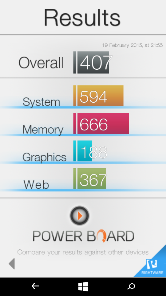 Como tem vindo a ser habitual recorremos ao software BaseMark OS II Free para realizarmos os nossos testes de Benchmark. Ao longo de alguns minutos, o Lumia 535 esteve a ser testado em vários campos tendo apresentado os seguintes resultados: