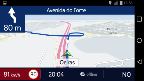 Também quisemos testar o GPS deste equipamento, que pode ser utilizado com acesso e sem acesso à Internet, e para isso instalámos o Here Maps, uma das aplicações de navegação gratuitas mais completas e fiáveis do mercado. O resultado foi bastante satisfatório, pois o LG G Flex 2 localizou rapidamente os satélites e revelou-se bastante preciso e assertivo.