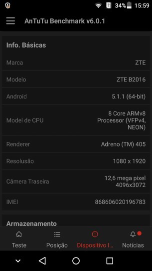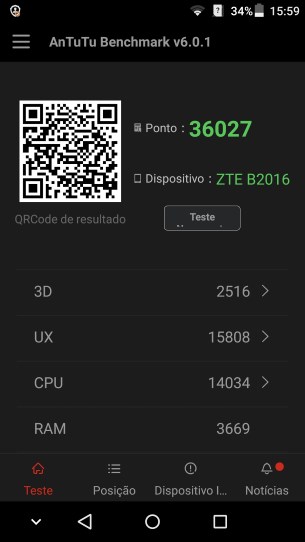 Mais uma vez para realizarmos os testes de Benchmark optámos por recorrer à nossa “fiel amiga” Antutu. O resultado obtido foi de 36027 , um resultado bastante bom e que não surpreende face aos componentes de hardware que servem de sustentação ao ZTE Axon Mini.