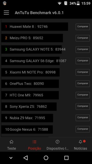 O processador octa-core Qualcomm Snapdragon 616 aliado aos 3GB de memória RAM conseguem conferir-lhe um desempenho muito interessante, sem que, ao longo dos nossos testes tenha apresentado engasgos ou problemas de rapidez mesmo em situações mais “arrojadas” como na execução de alguns jogos e aplicações de Benchmark.