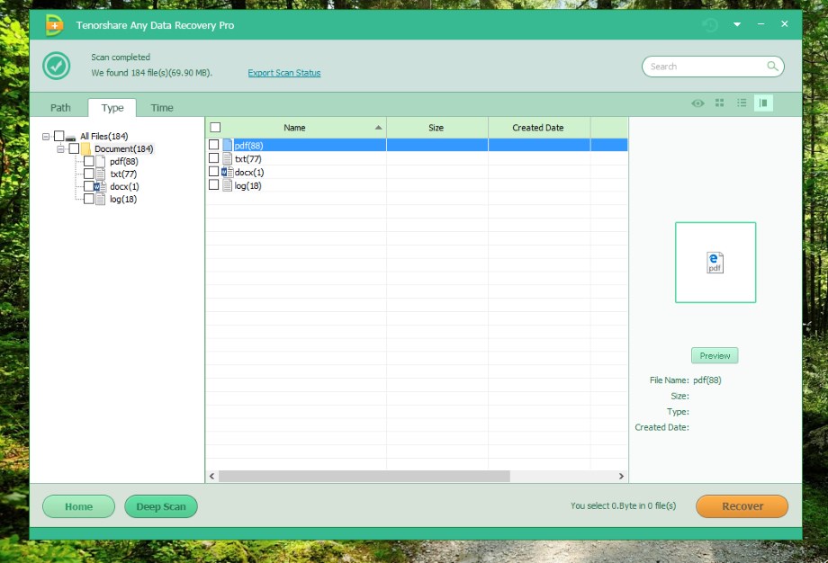 Assim que finalizado o processo de pesquisa, surgem informações que nos indicam quais os ficheiros que podem ser recuperados. Caso os documentos pretendidos não surjam na listagem, pode-se sempre fazer uma busca mais profunda (Deep Scan) para que seja possível encontrar mais ficheiros.