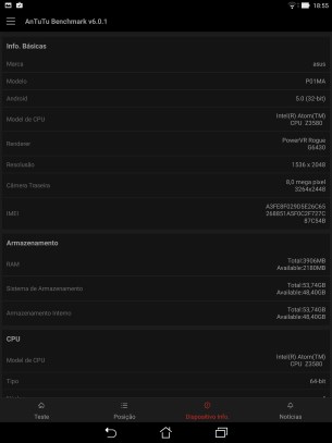 Para estes resultados contribuem os 4GB de memória RAM o processador Intel Atom Z3530, um SoC Quad-Core de 64-bits que funciona até 2,33 GHz e um GPU PowerVR Rogue G6430 de 533 MHz.