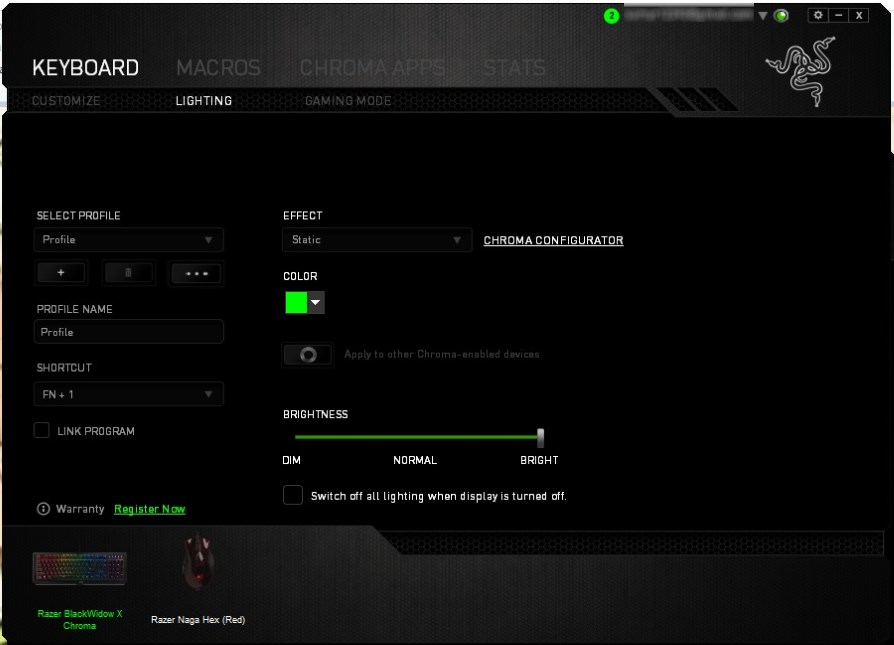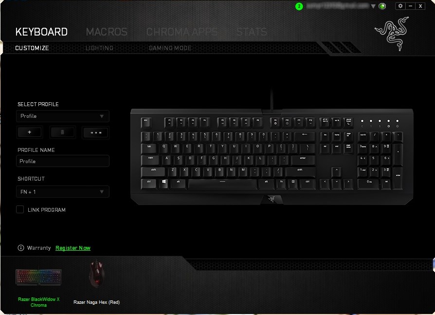 Como qualquer outro periférico da marca Razer, a personalização do teclado BlackWidow Chroma passa pela utilização do Razer Synapse 2.0. Através deste software, que é instalado automaticamente quando ligamos pela primeira vez um periférico Razer, podemos personalizar e atribuir, de forma individual, funções a cada uma das teclas do BlackWidow Chroma, assim como definir a intensidade e modo da retroiluminação, ligar/desligar e alterar algumas opções do modo de jogo, e também gravar macros. O software Razer Synapse 2.0 deteta ainda se existem novas atualizações de firmware e instala-as nos periféricos.
