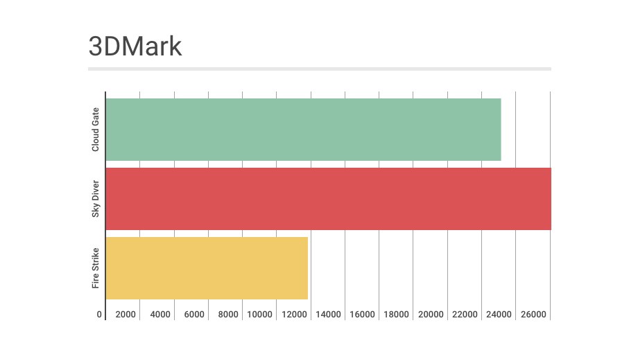 3DMark: Cloud Gate: 22,920; Sky Diver: 25,943; Fire Strike: 11,668