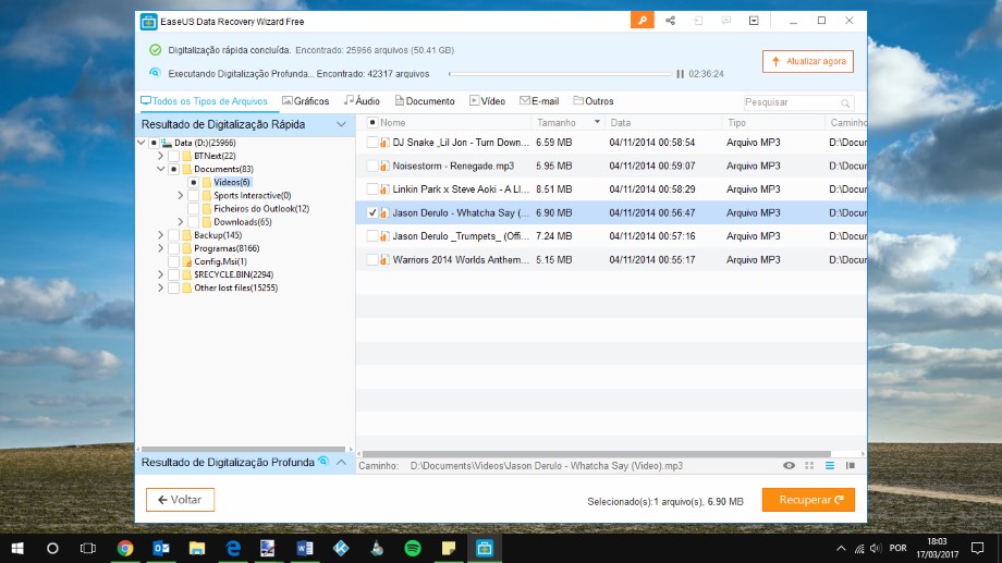 Se ainda assim, os dados que foram encontrados na primeira pesquisa não forem os pretendidos, pode-se sempre efetuar uma pesquisa mais profunda, optando pela opção de “Digitalização Profunda”. De notar que esta é uma opção que levará (de forma significativa) muito mais tempo em busca de ficheiros perdidos…