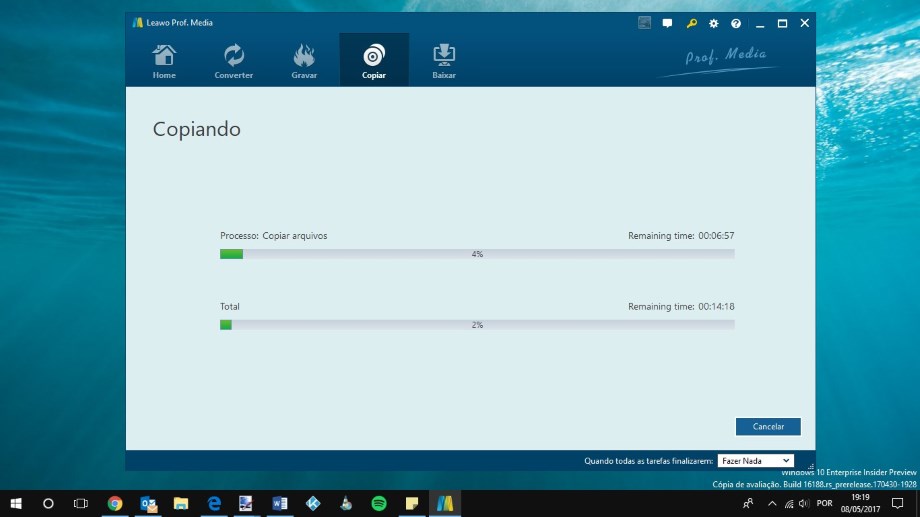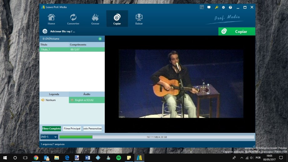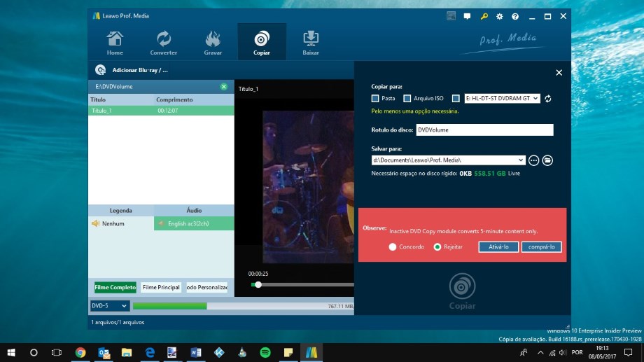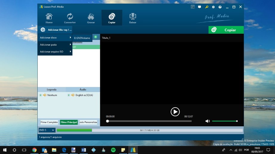 Depois de escolhermos a opção que melhor se ajusta ao nosso tipo de utilização, é hora de clicar no botão “COPIAR” existente no topo direito da interface do Leawo DVD Copy.