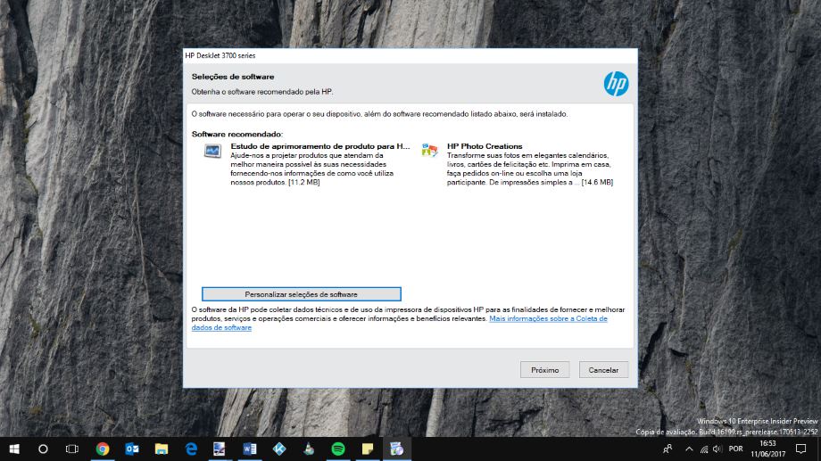 Optámos também por escolher a opção de instalar o software disponibilizado pela HP que permite através de um dispositivo Android ou iOS imprimir fotografias ou documentos a partir do telemóvel. Desta forma é possível imprimir as fotografias, por exemplo, do Facebook ou presentes no cartão de memória do telemóvel.
