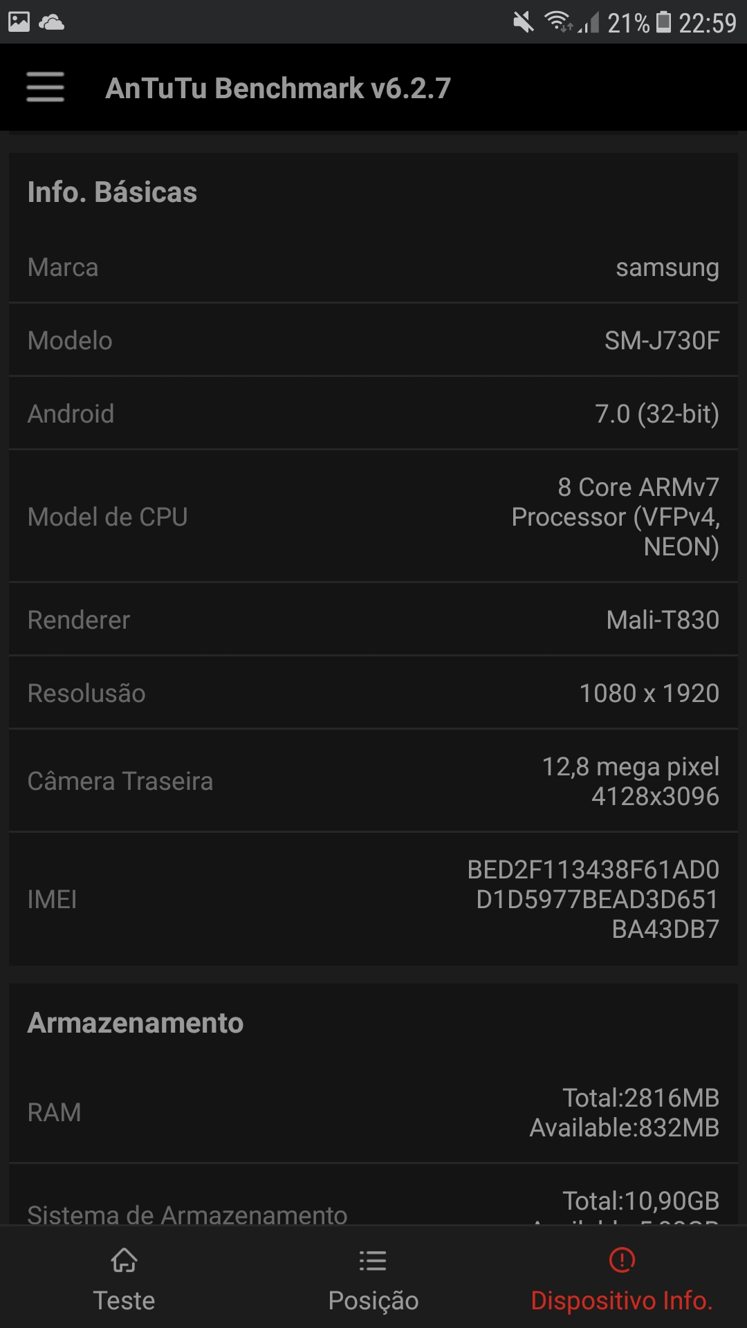 | Armazenamento | 16 GB; expansível via microSD até 256 GB |