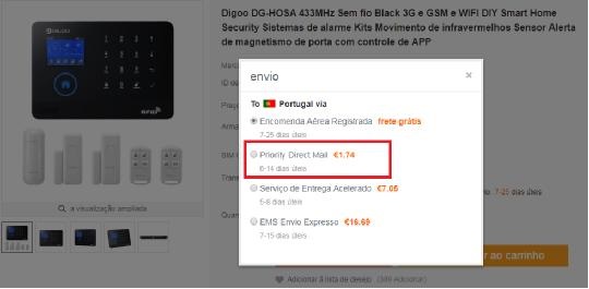 No caso dos produtos com um valor superior aos 22 euros, os clientes podem escolher o método de envio Priority Direct Mail. Com este método de envio, o pacote não passa pela alfândega e não precisa de pagar taxa. Este método de envio está disponível para a maioria dos produtos que tenham um peso inferior a 2 Kg.