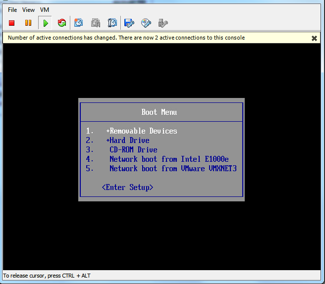 Já com o ISO no datastore e o adicionado à VM que queremos instalar o SO, vamos começar a nossa instalação escolhendo arrancar (boot) a VM pelo CDROM virtual.