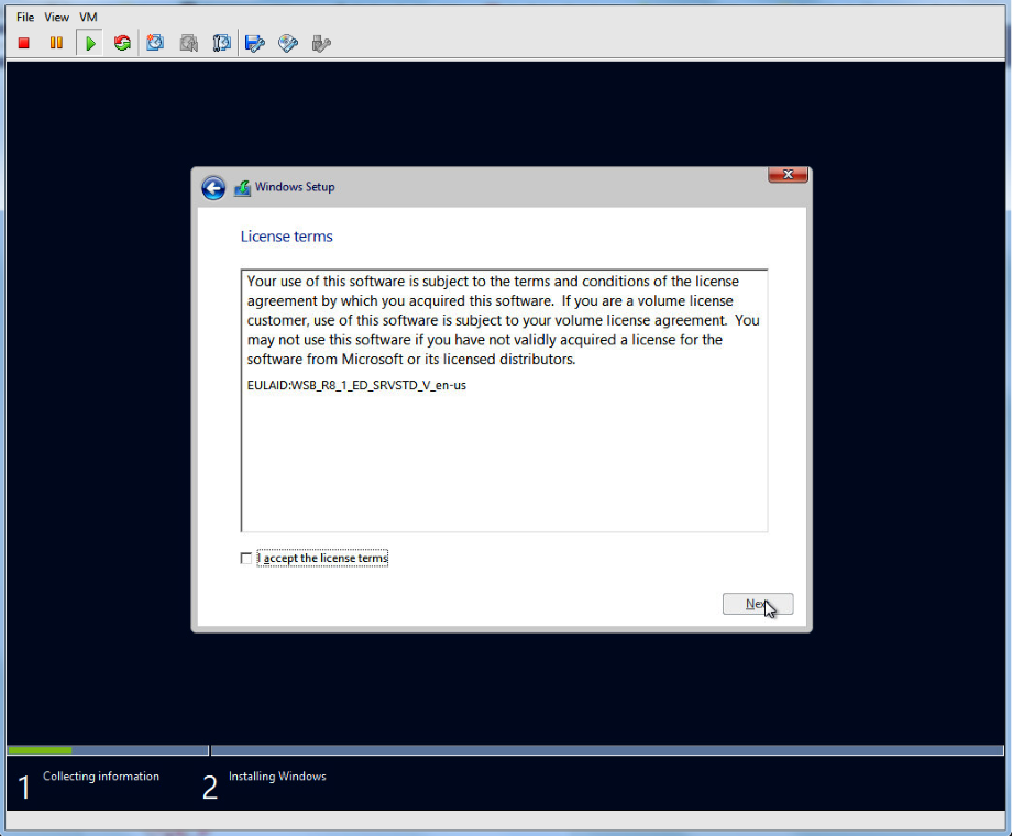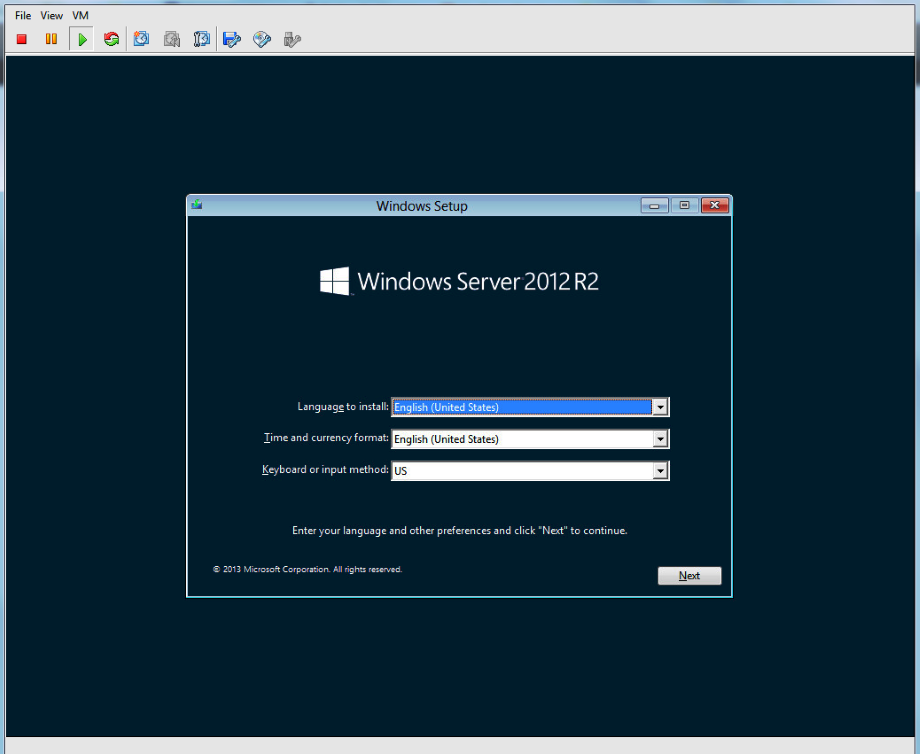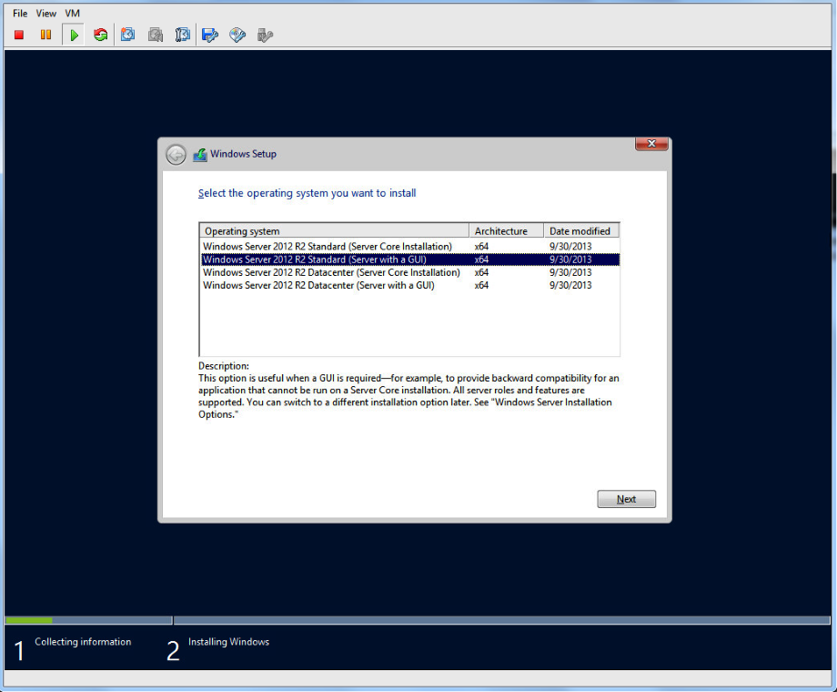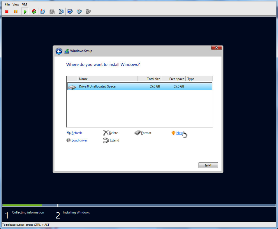 Escolhemos a partição a instalar, e clicamos “Next” e iniciara a instalação do Windows 2012.