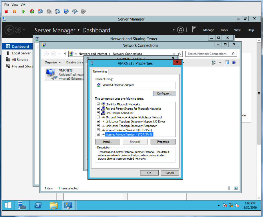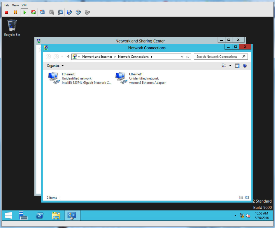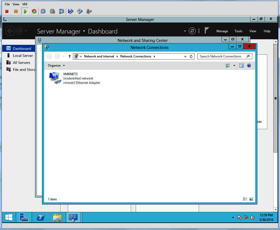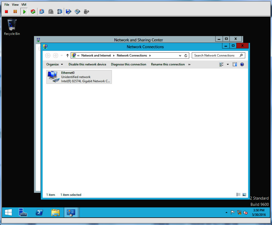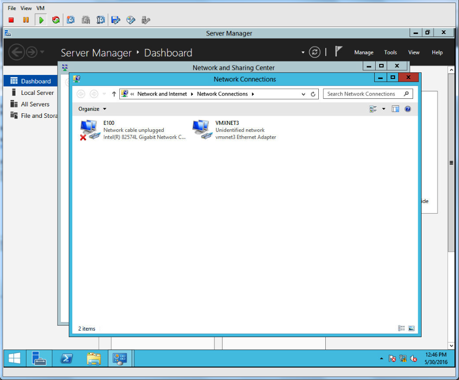 Como se devem recordar, no artigo Virtual Wintech : "ESXi: Como Criar e Configurar uma Maquina Virtual (VM) – Parte 2" quando criamos a VM adicionamos 2 placas de rede (uma E100 e outra VMXNET3) . Depois de instalarmos o VMware Tools e todos os drivers necessários já estarem instados o Windows ira reconhecer a segunda placa de rede.