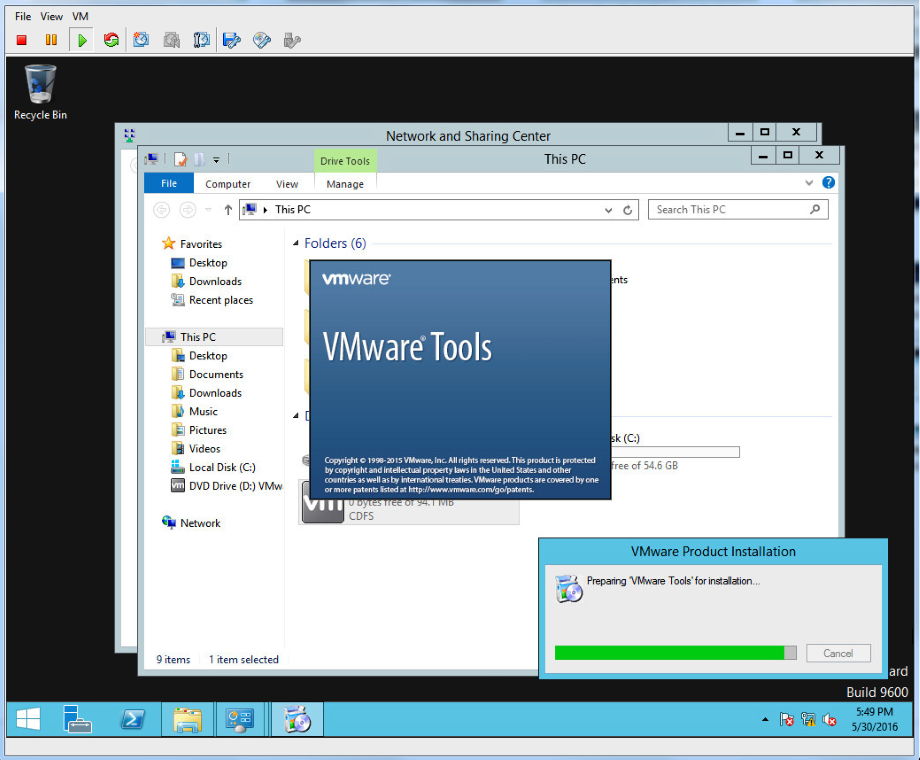 Fazer um reboot do SO (VM) e o “VMware Tools” ficara instalado.
