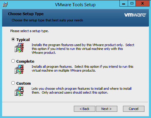 A nossa instalação será standard por isso escolhemos a opção Typical. A opção completa tem outro tipo de drivers (como para o vShield etc.) que não devem ser instalados se não os vamos usar.